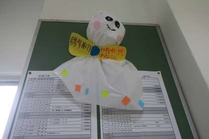 (と、学校の3年生のフロアでお留守番しているテルテル坊主さんです)