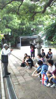 写真は、何組かはわかりませんが、一本柱鳥居と被爆クスノキの説明を聞き、セレモニーをしているところだそうです。
