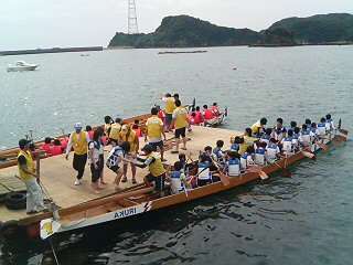 各艇とも準備が整い、生徒が次々に乗り込んでいます。