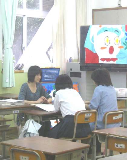 廊下で待って頂いている保護者の方もおられます。2年生ではチャレンジ体験のビデオを上映しています。エアコンも入っていますので、待って頂いている間にご利用下さい。
