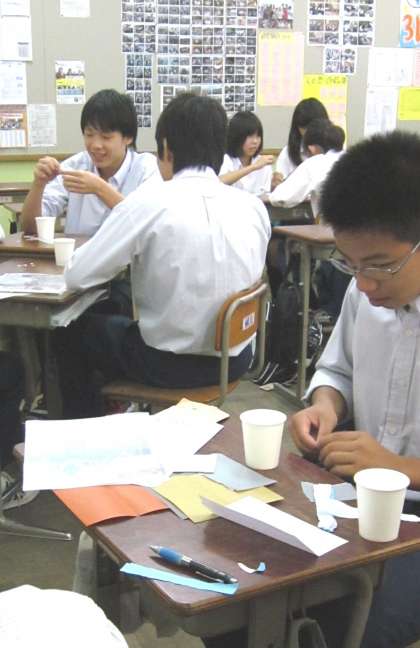 4限、3年生の教室で細かい作業をしています。
