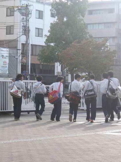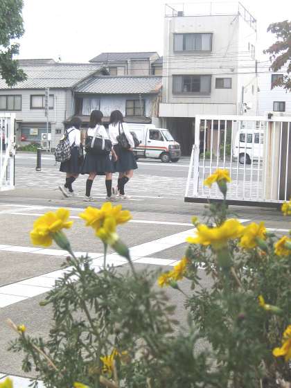 生徒がつぎつぎに下校していきます。