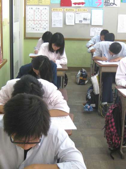 2限、理科の試験、3年3組の様子です。