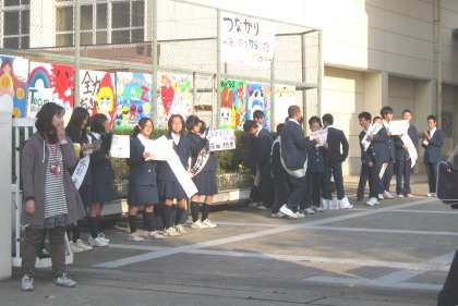 今日も正門に立ってみんなに訴えていました。