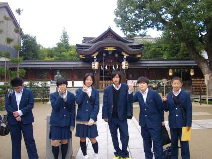 神殿に向かって何をお願いしているのでしょうか?(菅原様、成績が上がりますようにお願いします !!!)