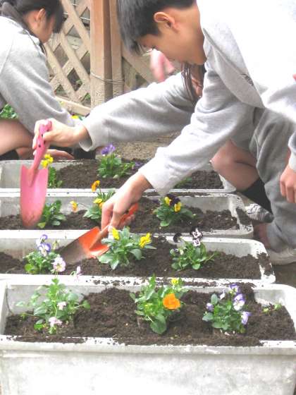 昨日学校行事「花植え活動」の第2回を行いました。
