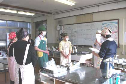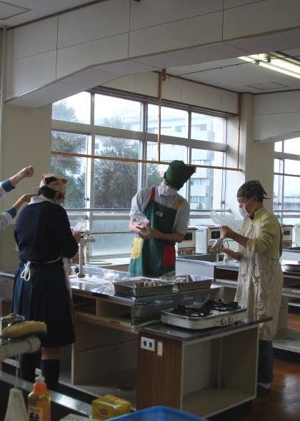 本校生徒は2名、3人でココアクッキーの調理実習です。
