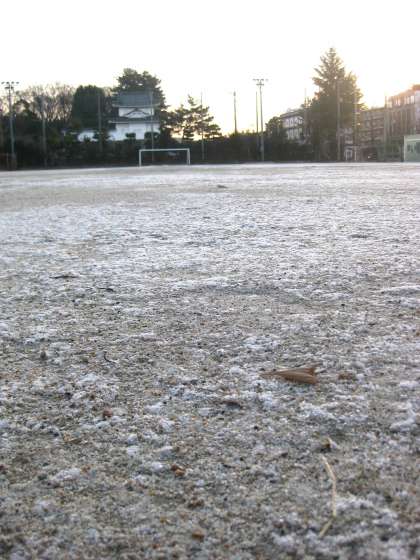 グランドは凍りついています。