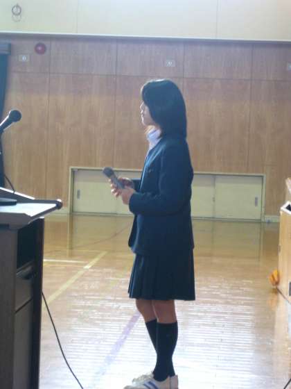 体育館内はかなり冷えています。生徒の熱気で少しは暖かくなっていますが・・・・・。