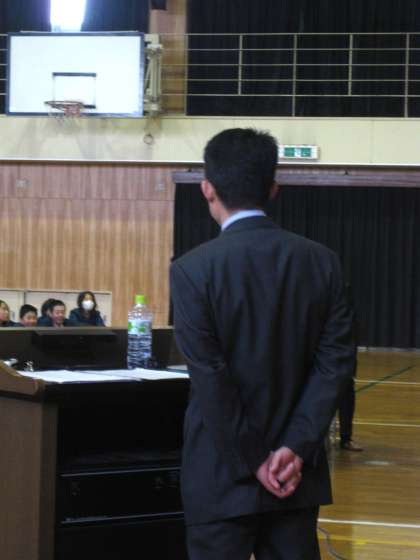 体育館での講演会です。