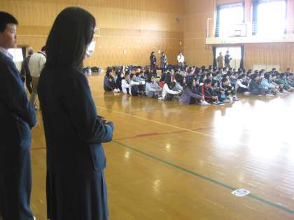 はじめに体育館で吹奏楽部や生徒会の歓迎を受けました。