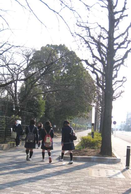 他校の女子中学生ですが、東の方へ向かって正門前を通って行きます。
