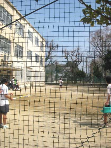 昨日の日曜日、中庭のテニスコートではソフトテニス部が練習をしています。