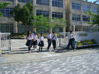 午前9時,それぞれのグループごとに,それぞれの一つ目の目的地に向けて,学校を出発しました。