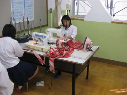 体育館での発表「ロックソーラン」の鉢巻をつくる生徒達。