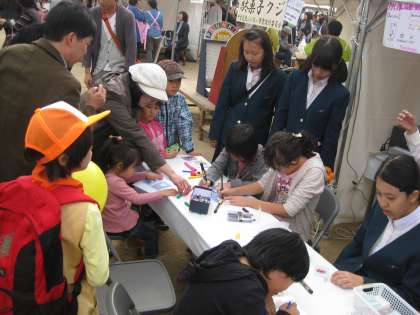 中京区の中学校の生徒会による、ちびっ子対象のブースです。