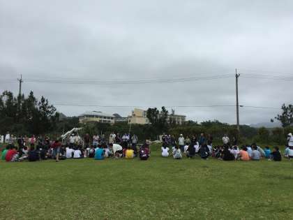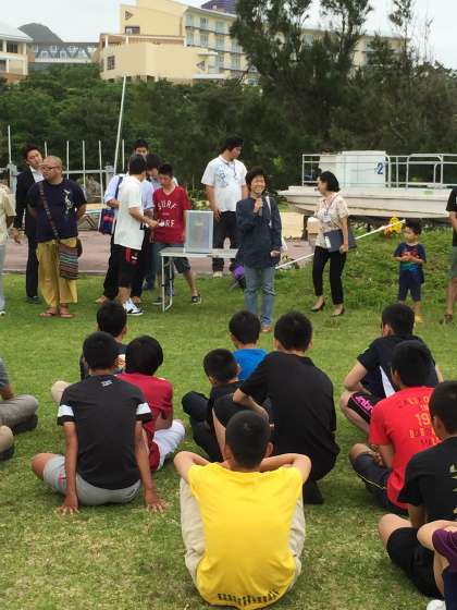 このあと民泊先毎に写真撮影をしてマリン体験をします。」