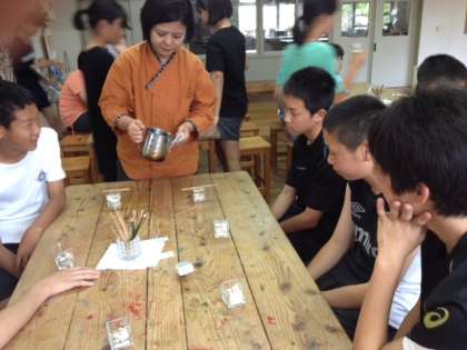 文化体験の様子です。ジェルキャンドル作りです。