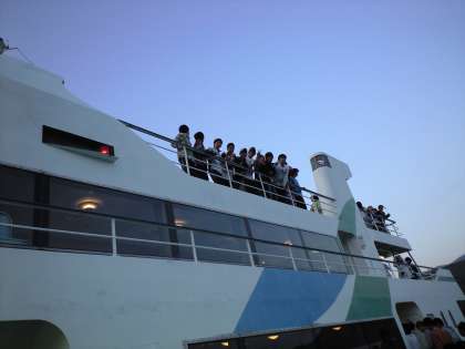 今、船上です。野尻湖の遊覧船に乗っています。天気も良いので絶好のコンディションだそうです。