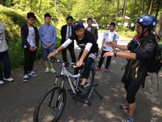 マウンテンバイクの講習を受けています。