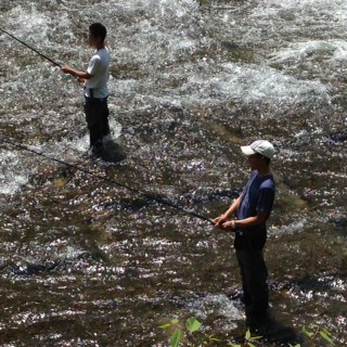 再び,渓流の水辺から、釣れたのかな。