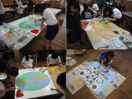 また生徒会執行部は、今の生徒会執行部のスローガンを示すシンボルマークとCAN活動ののぼり旗を制作していました。生徒会執行部のシンボルマークも学級のシンボルマークと同じく掲示されます。