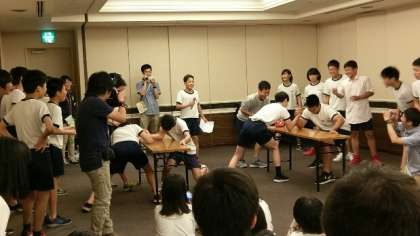 次は腕相撲大会でした。各クラス男女4人ずつの代表がトーナメント戦で勝負しました。