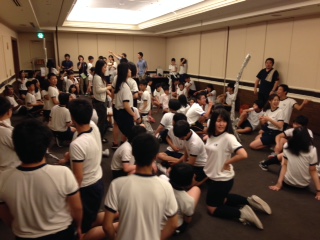 学年レクの最終種目は新聞タワーでした。各クラス五つの班がどれだけ高いタワーを作れるかを競いました。楽しいひとときだったようです。