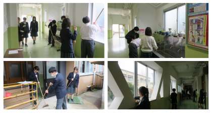 今日は2学期の終業式。高田校長先生からは3点「命を守ること」、「計画を立てて過ごすこと」、「来年は更なる成長の年なること」のお話がありました。河邊先生からは、「自転車ルール」「SNS(写真等)投稿」「違法薬物」などの身の回りにある危険について、しっかりと「考動」してくださいと話がありました。式後は、縦割り活動での大掃除を行いました。異年齢グループ構成で3年生がリーダーシップを発揮し指示を出してくれていました。窓ガラスから、ドアの溝、ロッカーの中や上までピカピカ。しかも全員が一生懸命。素晴らしい!!!大事にされている校舎や学校の道具は喜んでいると思います。