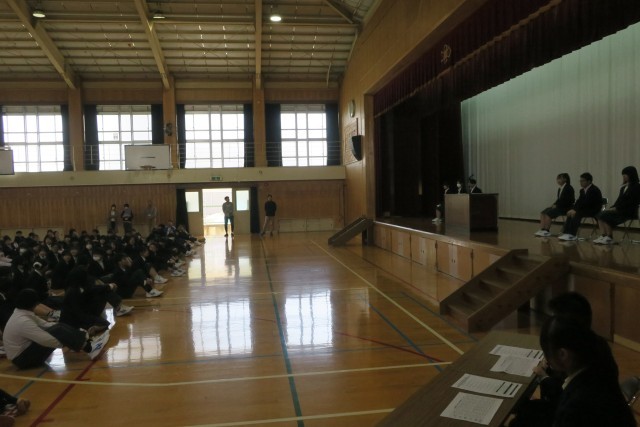 生徒会の代表からは、「クラスのリーダが決まって生徒会活動もいよいよスタートです。みんなの力を合わせて、取組ましょう」と伝えてくれました。