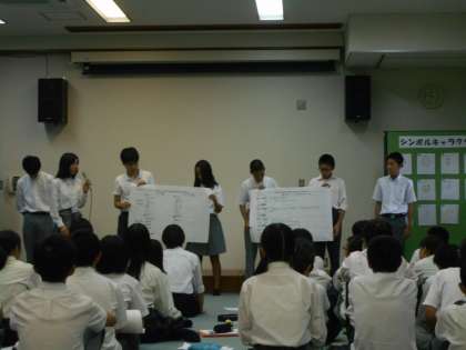 「S・W・O・T」分析を通して理想の学校づくりについて考えました。生徒会活動が活発になることは、学校が活気に満ちてくることにつながります。それぞれの学校が生徒会の活性化に向けて意見を交換しました。