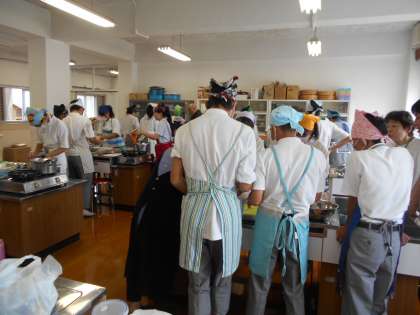 1組,5組の実習の様子です。どのクラスも素早く京野菜を調理していました。