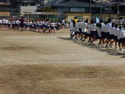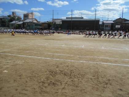 13時15分現在,「色別対抗綱引き」が行われています。次は「色別騎馬戦」があります。
