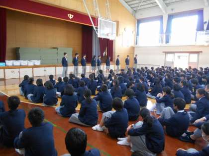 2日(木)6限,新生徒会役員及び後期評議専門委員認証式が行われました。はじめに旧生徒会役員全員から,この1年間の活動を振り返り本部役員を務めた感想や,みんなへの感謝の言葉がありました。そして,新役員へ認証書が授与され,新生徒会長より力強い決意表明がありました。続いて後期の新評議・専門委員への認証書が授与されました。