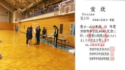 女子は北野中・小栗栖中とのリーグを勝ち抜き決勝トーナメント進出。衣笠中・下京中を破り決勝戦まで進みました。最後に,春日丘中に敗れはしましたが,全員が一丸となって勝ちとった準優勝でした。応援をしてくださった方々に感謝いっぱいです。