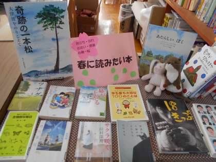 司書の先生が,「春に読みたい本」のコーナーを作ってくださいました。学校図書館をどんどん利用しましょう。