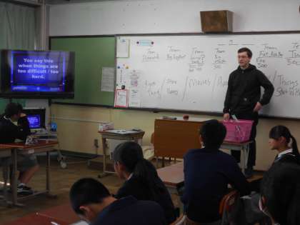 今週はALTの先生が,英語科の授業に来て下さっています。もちろん「発問」もすべて英語です。「読む」「聞く」「話す」「書く」すべての力が必要と言われています。ALTの先生との会話から大いに学んで下さい。