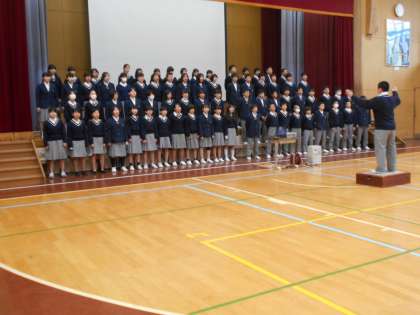 3年生を送る会を翌日にひかえ,合唱練習も「仕上げ」の段階へ入りました。学年みんなの歌声が体育館に響いていました。