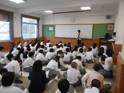 校外学習を明日にひかえて,1年生は6限に事前指導を行いました。持ち物や服装等について確認しました。雨天で順延となる場合は,午前7時半に本校のホームページで連絡いたします。
