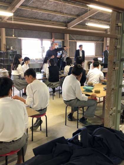 昼食後,バスで移動し,大谷焼の工房に着きました。「手ひねり体験」を行っています。