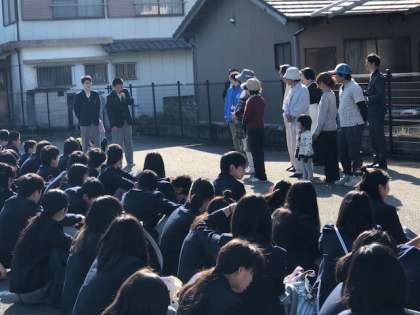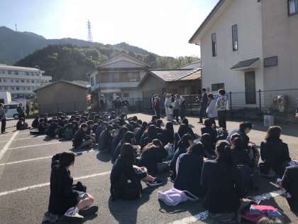 修学旅行は3日目を迎えました。昨日はとても思い出に残る体験学習を行いました。今日はお世話になった方々と離村式を行い,帰路につきます。写真は離村式の様子です。