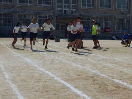 最後の種目,学級対抗リレーとなりました。走者とクラスの応援が一つになりました。