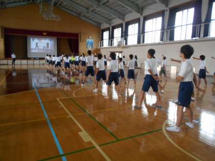 2年生は,文化祭で披露する「京炎・そでふれ」の練習が進んでいます。文化祭まであと1か月をきりました。体育館ステージに踊りの振付けを映しながら,それぞれのパートの練習をしています。