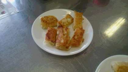 テスト後は春巻きの皮をパイに見立てたアップルパイに調理して,旬の果物をおいしく食べていました。