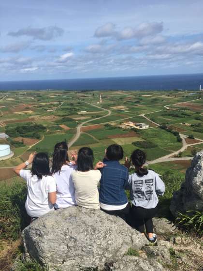 城山からの景色です! 紺碧の海が広がっています。