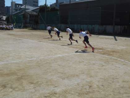 10時05分現在,男子200メートル走を行っています。次は「おじゃまレース」です。