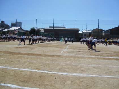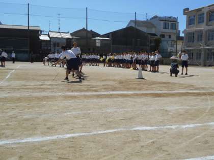 11時40分現在,「大縄跳び」を行っています。次の競技は色別対抗リレーです。