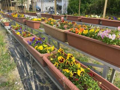 パンジーもまだまだ,太陽の日を浴びて元気に咲き誇っています。