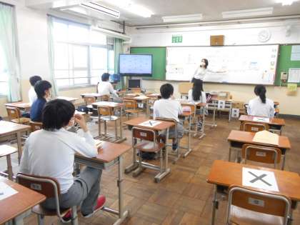 臨時休校が続いていますが,今週から学校再開への準備期間として学年別に登校(1時間以内)と質問相談会を行っています。今日の9時からは3年生が登校(任意)し,学習課題の提出や課題の質問相談を行いました。手洗いを行い,ディスタンスを設けるため,クラスを分割し,教室内は「間隔」とって座りました。