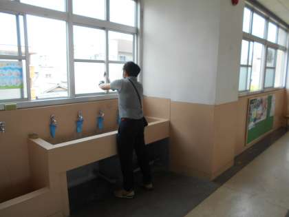 昼は暑さを感じる日が多くなりました。A班・B班に分かれての登校による授業が行われています。新形コロナウイルス防止対策のため,みんなが下校した後は,手洗い場や窓,廊下の手すりなど,先生がビニール手袋をして毎日「消毒」をしています。またトイレ清掃も行っています。